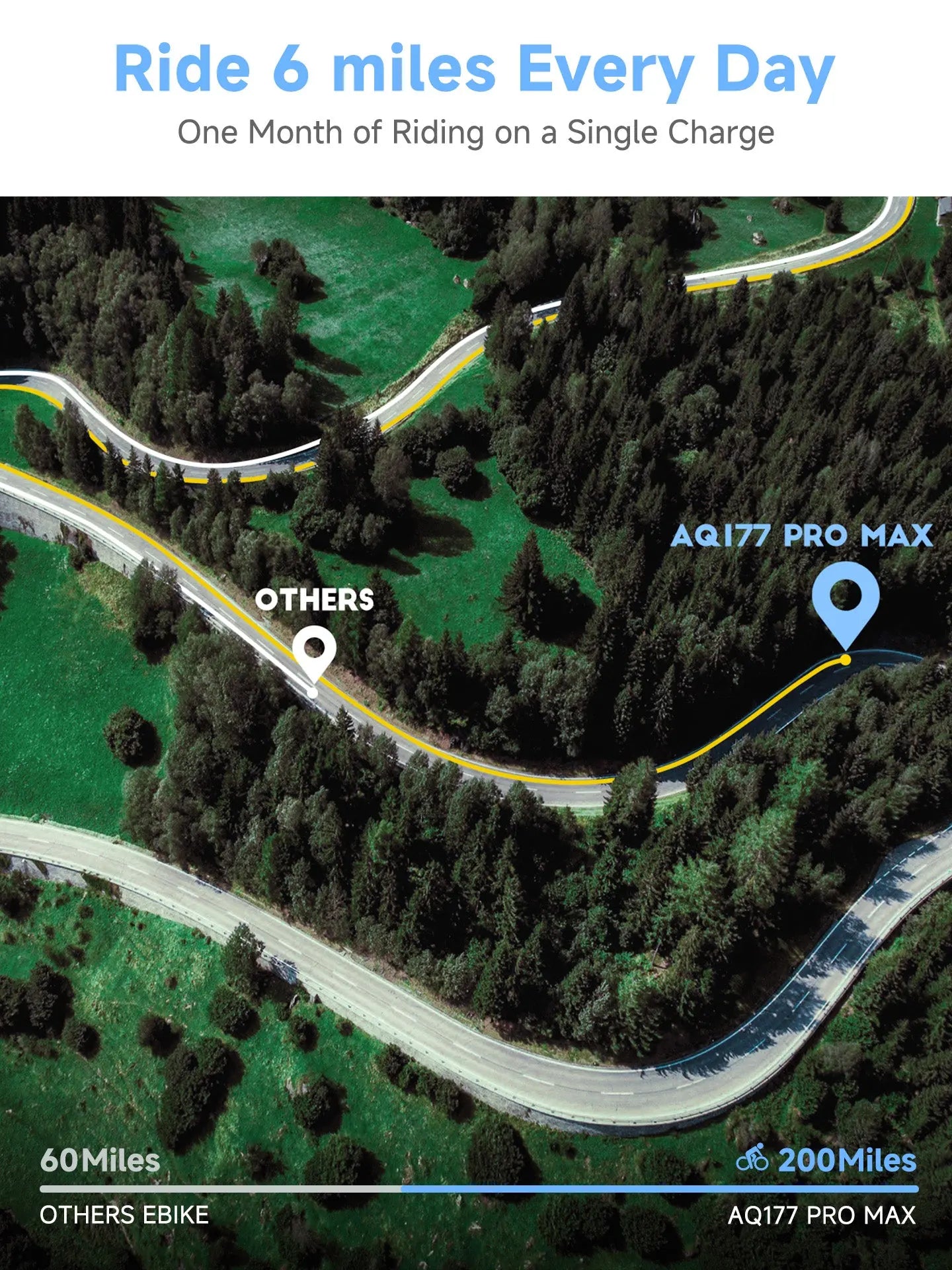 Equipped with a 750W rated power (peak 1000W) brushless motor, the AQ177 Pro Max 48V provides up to 80Nm of torque, bringing smooth acceleration and stable climbing ability, with a maximum speed of 45km/h. Compatible with 3 speed modes, the assistance level can be adjusted according to riding needs to meet the needs of daily commuting or energy-saving long-distance riding.