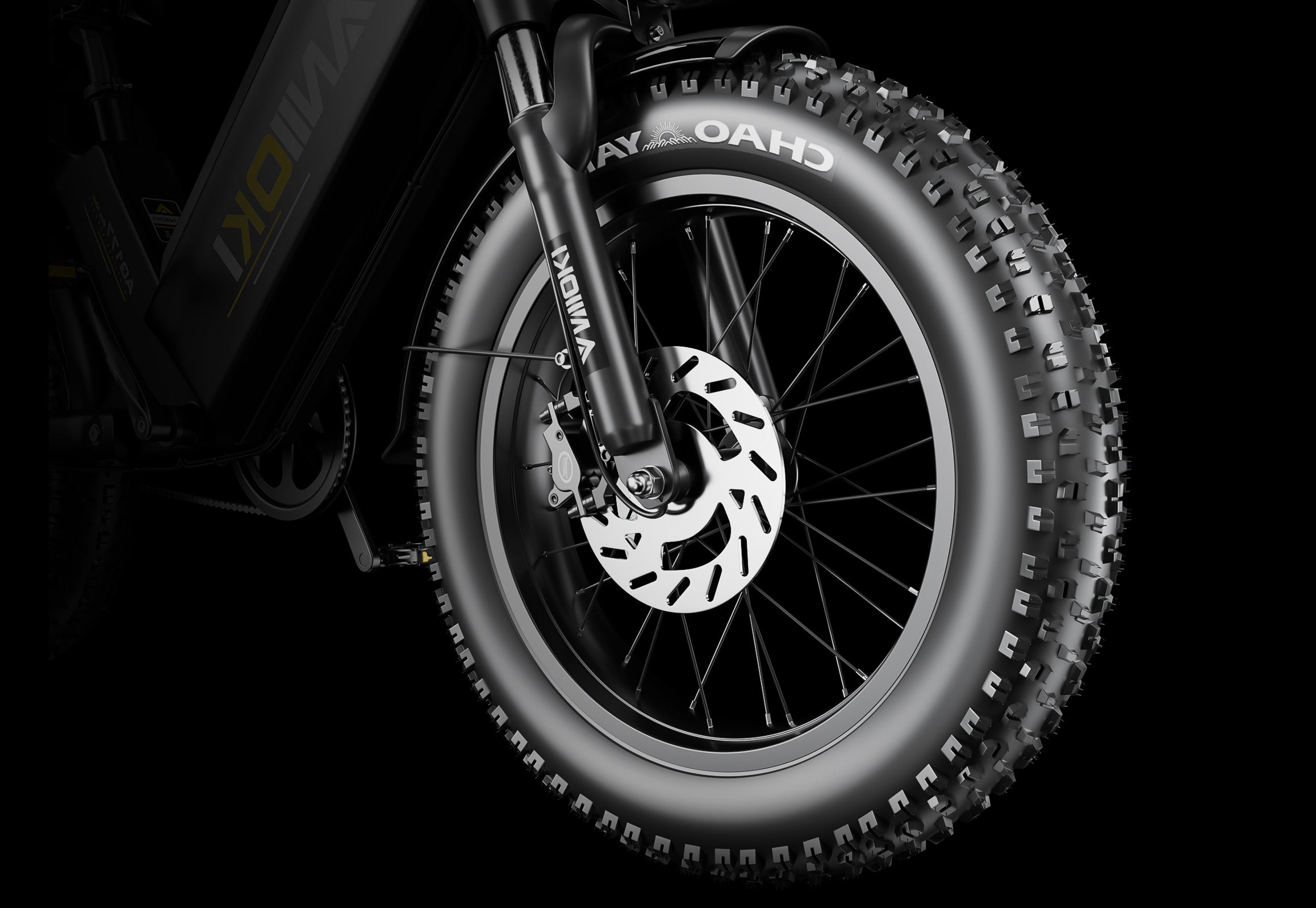 The AQ177 Pro Max eBike features 180MM hydraulic brakes that deliver smoother, more responsive braking performance with superior modulation and stopping power compared to traditional mechanical disc brakes, ensuring greater safety and control in all riding conditions.